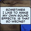 Description: word balloon: Sometimes I like to make my own sound effects. Is that so wrong?