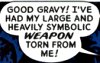 Description: "good grief, my large and heavily symbolic weapon torn from me!"
