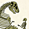 Description: Dinosour and human skeleton, facing, palms up in offering